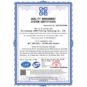 Shijiazhuang Jinta Flooring Technology Co., Ltd., üretim ve hizmet süreçlerinde uluslararası kalite standartlarını karşılayarak ISO 9001:2015 sertifikasına sahiptir. Bu belge, firmamızın müşteri memnuniyetini, güvenilirliği ve sürekli iyileştirmeyi esas alan yönetim anlayışını belgelemektedir.